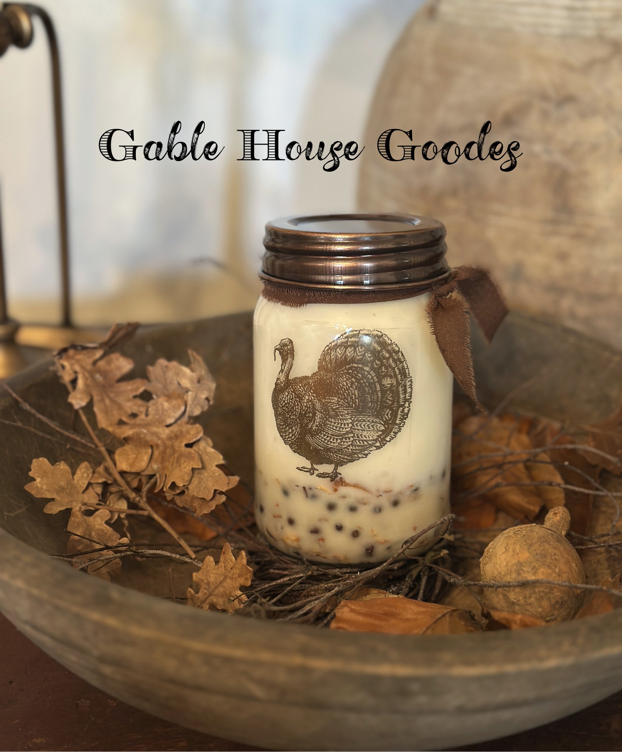 Mulling Botancal filled bottom 16oz Jar Candle "Turkey Tom" with a Copper finish lid Aroma of "Cinnamon Sticks" For Order